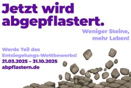 „abpflastern“ ist ein deutschlandweiter Wettbewerb, bei dem Städte und Gemeinden in einem freundschaftlichen Wettstreit Flächen entsiegeln. Beim